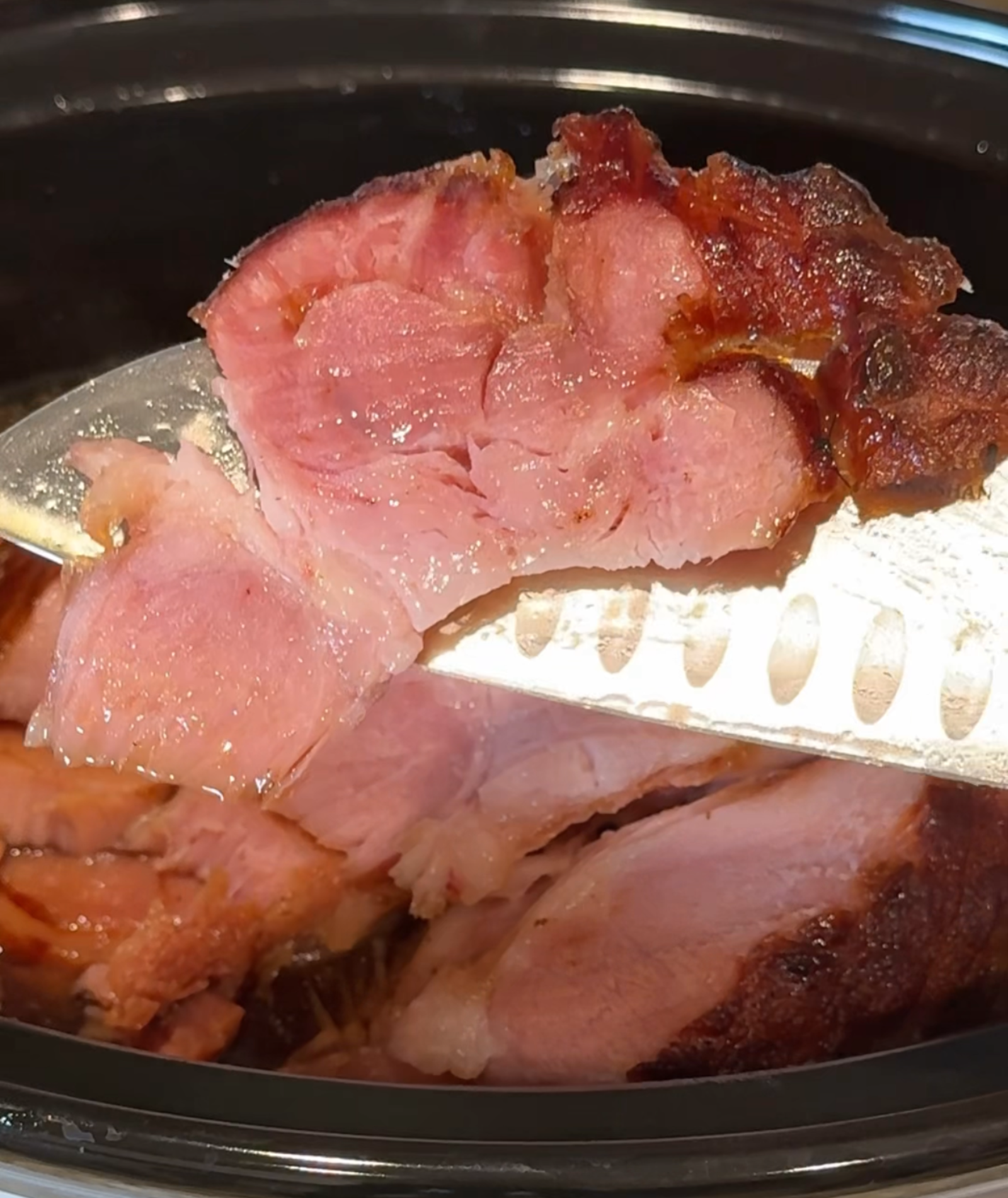 Once the ham is fully heated and tender, carefully remove it from the slow cooker. Slice or shred the meat as desired, then return it to the slow cooker juices. Let it soak briefly so the meat absorbs even more of the flavorful glaze before serving.