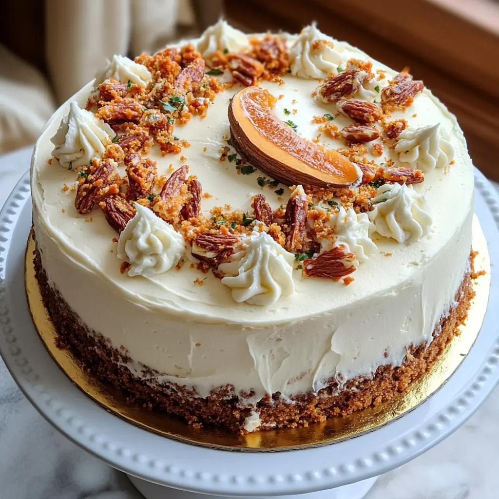 Q2: How long does this cake last, and how should I store it? A2: This carrot cake will last for up to three days if stored properly. To keep it fresh, store it in an airtight container in the refrigerator. The cool temperature helps to preserve the moisture in the cake and prevents the cream cheese frosting from spoiling. Before serving, let the cake sit at room temperature for about 30 minutes to soften the frosting slightly.