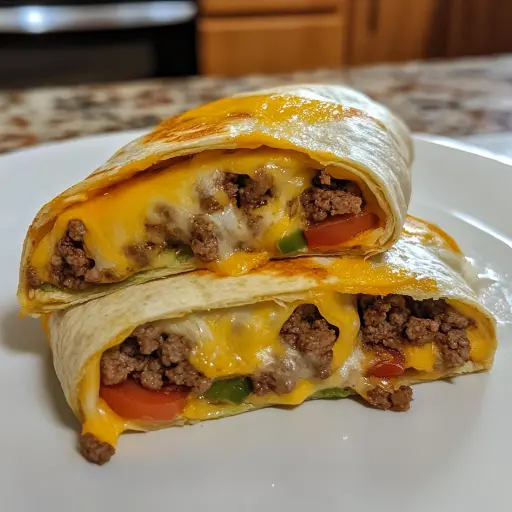 Description: Craving a cheeseburger but looking for a fun, quick, and less messy way to enjoy it? These Air Fryer Cheeseburger Wraps are the answer! Ground beef seasoned to perfection, melty cheddar cheese, and your favorite burger condiments are all wrapped up in a crispy tortilla, creating a portable and satisfying meal. This recipe is perfect for busy weeknights, game day gatherings, or a simple lunch that’s sure to please everyone. The air fryer ensures the tortilla gets perfectly golden brown and delightfully crispy, offering a delightful contrast to the savory filling. Get ready to experience a cheeseburger like never before!