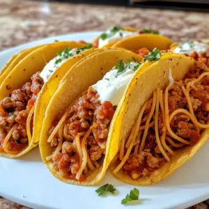 Description: A fun, kid-friendly fusion of Italian and Mexican flavors — crispy taco shells filled with saucy spaghetti and topped …