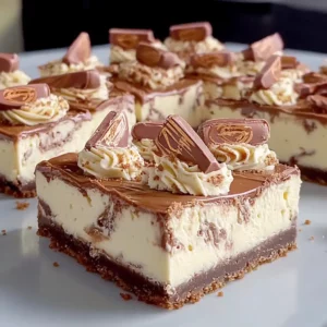 Short Description Indulge in these decadent Kinder Bueno & Nutella Cheesecake Bars! A buttery biscuit base, a creamy cheesecake filling …