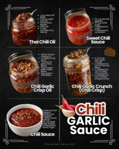 1. Chili Garlic Crunch (Chili Crisp)INGREDIENTS* 1/2 cup (120 ml) oil , vegetable, grapeseed or neutral flavored oil* 6-8 cloves …
