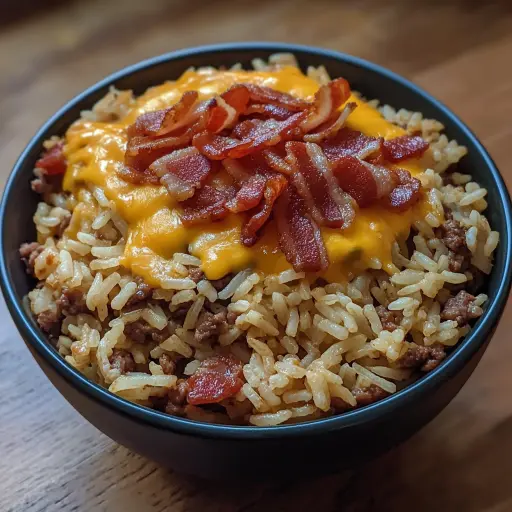 Bacon Cheeseburger Rice is a quick, easy, and comforting one-pan dish that combines all the classic flavors of a bacon cheeseburger into a hearty rice bowl. Ground beef, beef bacon, cheddar cheese, and tangy condiments come together to create a satisfying meal that’s perfect for busy weeknights.