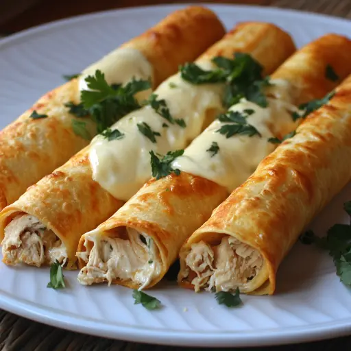 Description: These Baked Cream Cheese Chicken Taquitos are a delightful twist on a classic Mexican favorite. They combine tender shredded chicken with creamy, cheesy goodness, all wrapped up in a crispy tortilla shell. Baked to golden perfection, they’re a healthier alternative to fried taquitos and incredibly easy to make. Perfect as an appetizer, snack, or light meal, these taquitos are sure to be a hit with family and friends. The creamy, savory filling and satisfying crunch make them an irresistible treat that’s quick to prepare and customize to your liking. Whether you’re looking for a crowd-pleasing party snack or a simple weeknight dinner, these baked taquitos deliver big flavor and satisfaction.