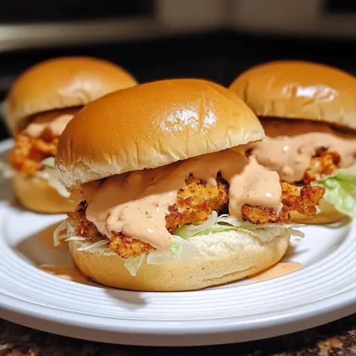 Description: Delectable bite-sized chicken sliders featuring crispy, golden-fried chicken coated in a flavorful bang bang sauce, nestled between soft slider buns with fresh toppings. A perfect appetizer or snack for any occasion!