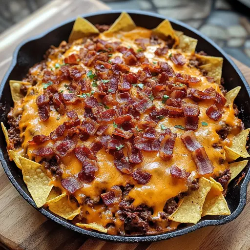 Description: A tantalizing fusion of classic cheeseburger flavors and the irresistible crunch of nachos, all cooked in a single skillet for easy cleanup! This BBQ Bacon Cheeseburger Nacho Skillet is the ultimate crowd-pleaser, perfect for game day, casual get-togethers, or a fun family dinner. Imagine layers of seasoned ground beef, tangy BBQ sauce, crispy tortilla chips, gooey cheddar cheese, and savory bacon, all melded together in a symphony of deliciousness. Prepare to be amazed by the simplicity and the explosion of flavors in every single bite.