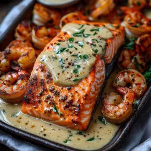 Description: A delectable combination of blackened Cajun salmon and succulent shrimp, enveloped in a rich and creamy garlic herb sauce. …