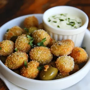 Description: These crispy fried olives are an irresistible appetizer or snack. Plump green olives are coated in a seasoned breadcrumb …