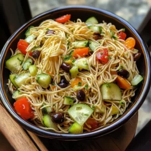 Description: A colorful and refreshing pasta salad bursting with fresh garden vegetables, tossed in a tangy Italian dressing, and perfect …