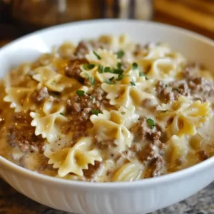 Description: A comforting and rich pasta dish featuring tender ground beef and bowtie pasta tossed in a luscious creamy sauce. …