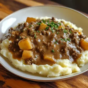 Description: Indulge in the ultimate comfort food with this classic ground beef and gravy recipe, generously served over a bed …