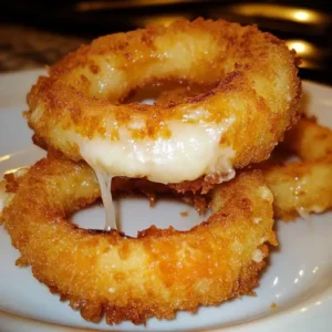 Description: A delightful twist on the classic onion ring, these cheesy onion rings feature a molten mozzarella center nestled between …