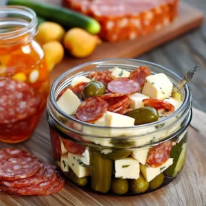 Description: Elevate your appetizer game with these vibrant and flavorful marinated cheese, salami, and pickle skewers. These are perfect for …