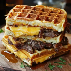Description: Indulge in the ultimate comfort food mashup with this Bourbon-Maple Brisket Grilled Cheese Wafflewich. Tender, slow-cooked brisket infused with …