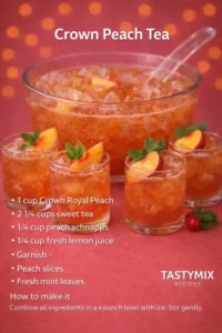 Description This Crown Peach Tea recipe is a delightful and refreshing punch bowl-style drink, perfect for gatherings, parties, or simply …