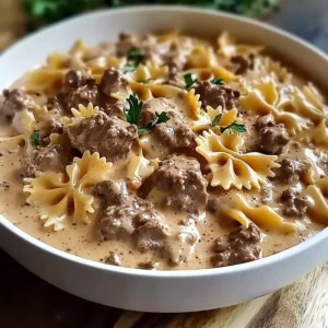 Description: This Creamy Beef and Bowtie Pasta recipe is a hearty and satisfying dish that combines perfectly cooked bowtie pasta …