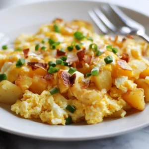 Description of this recipe: This Cheesy Potato Egg Scramble is a hearty and satisfying breakfast (or brunch, or even dinner!) …