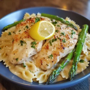 Description of this recipeLemon Garlic Chicken with Asparagus Creamy Bowtie Pasta is a delightful dish that combines tender chicken, vibrant …