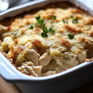 A comforting and classic Southern dish featuring tender chicken enveloped in a savory cornbread dressing, all baked together in a …