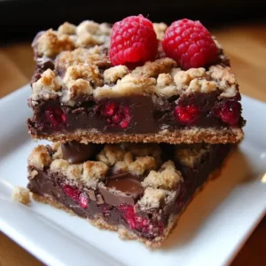 Description: Decadent chocolate raspberry crumb bars featuring a buttery, crumbly crust, a luscious raspberry filling, and a generous topping of …
