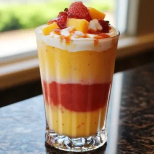 Description: A delightful and refreshing layered frozen beverage that mimics the vibrant colors of a sunrise. This Mango Strawberry Sunrise …