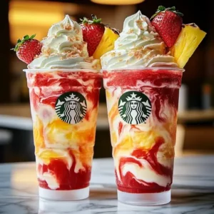 Description: A tropical twist in every sip — creamy, fruity, and refreshing! This Pineapple Strawberry Swirled Frappuccino is a vibrant, …