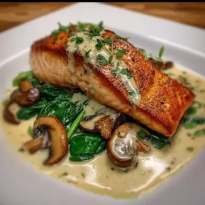Description: Indulge in the exquisite flavors of Garlic Butter Salmon served atop a bed of sautéed spinach and mushrooms, all …