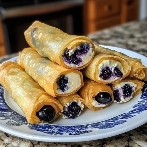 - Can I use other fruits instead of blueberries? Absolutely! This recipe is very versatile. You can substitute blueberries with other fruits such as strawberries, raspberries, blackberries, or even chopped apples. If using fruits that tend to release more moisture, like peaches, be sure to mix them with a little cornstarch to prevent the egg rolls from becoming soggy.