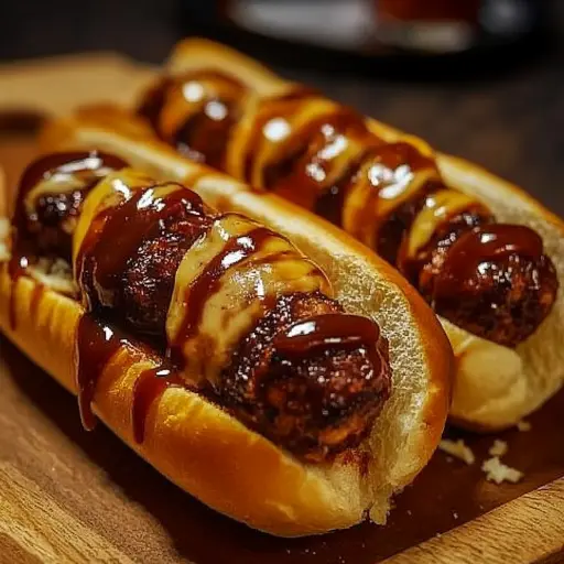 Step 7: Garnish and Serve: Drizzle the meatball subs with extra bourbon BBQ sauce for added flavor and moisture. If desired, top with crispy bacon bits for a delightful smoky crunch. Serve hot immediately.
