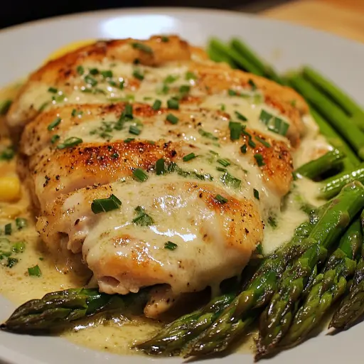 Description: This Caesar Chicken with Asparagus recipe delivers a delightful and flavorful one-pan meal that combines juicy, perfectly cooked chicken breasts with tender, crisp-tender asparagus, all coated in a creamy Caesar dressing and topped with savory Parmesan cheese. It’s a quick, easy, and incredibly satisfying dish perfect for a weeknight dinner or an elegant weekend meal.