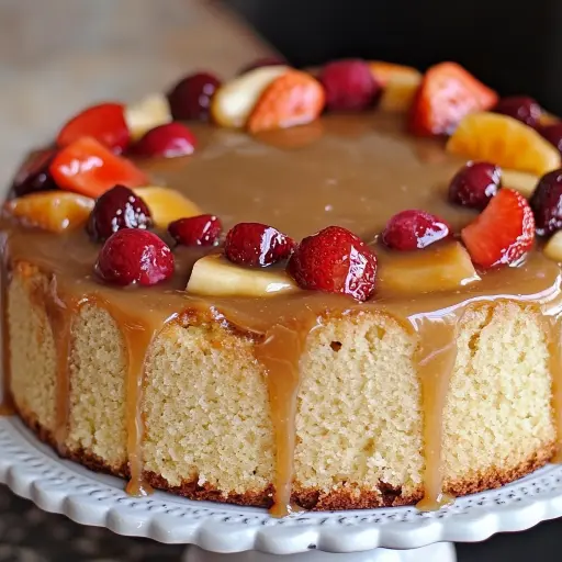 Description: This incredibly moist and flavorful cake combines the comforting simplicity of a classic baking recipe with the vibrant burst of tropical fruit salad. Drizzled with a rich, homemade caramel sauce, it’s a dessert that’s both comforting and exciting, perfect for any occasion. It’s a cake that surprises with its deliciousness, and the warm caramel sauce elevates it to another level of indulgence.