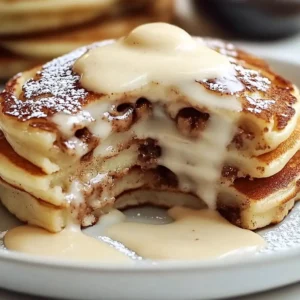 Description of this recipe: These Cinnamon Roll Stuffed Pancakes are a decadent breakfast or brunch treat that combines the comforting …