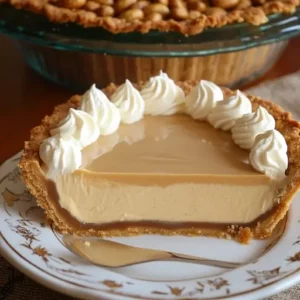 Description: A delightful no-bake pie featuring layers of creamy peanut butter, sweet cream cheese filling, and a crunchy peanut butter …