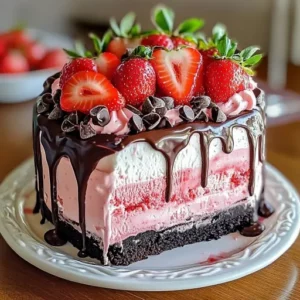 Description: A luscious and indulgent dessert that layers rich chocolate cake with creamy ice creams and fresh strawberries, perfect for …