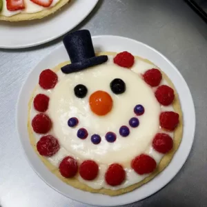 Description of this recipe: These adorable Snowman Fruit Cookie Pizzas are a fun, festive, and delicious treat perfect for the …