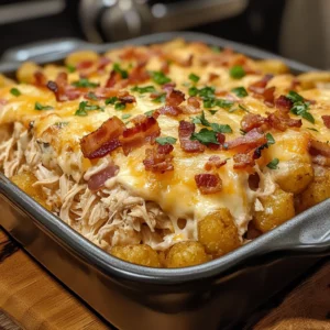 Description: This Loaded Chicken and Bacon Tater Tot Casserole is a hearty and fulfilling dish that combines crispy tater tots …