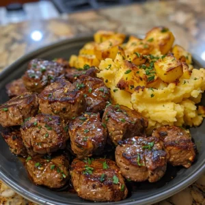 Garlic Butter Steak Bites and Cheesy Smashed Potatoes