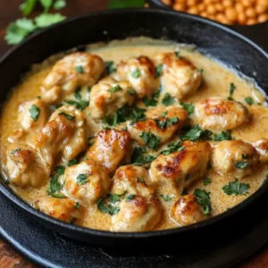 Description: Delectable bite-sized chicken pieces smothered in a rich, creamy, and buttery sauce, topped with melted cheddar cheese and fresh …