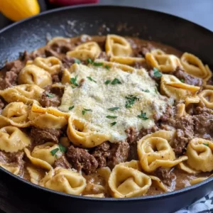 Description: A comforting and quick one-pan meal featuring tender cheese tortellini, savory ground beef, and a rich, creamy stroganoff sauce. …