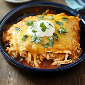 Cheesy Slow Cooker Chicken Enchilada Bake