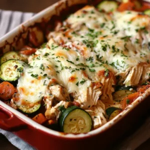 Description: This Chicken Zucchini Bake is a simple yet satisfying casserole that combines tender shredded chicken, vibrant zucchini, and juicy …