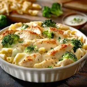 Description: This Chicken and Broccoli Alfredo Bake combines tender rigatoni pasta, juicy chicken, fresh broccoli, and a creamy, cheesy Alfredo …