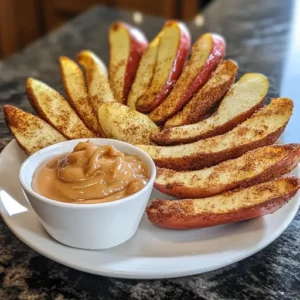 Description: Crispy and sweet air-fried apple wedges dusted with cinnamon sugar, served with a rich caramel whipped cream dipping sauce—an …