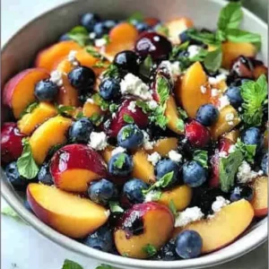 Description: This vibrant and refreshing salad is the perfect embodiment of summer. Sweet, juicy peaches and plump blueberries mingle with …