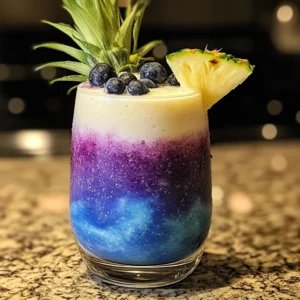 Description: Escape the ordinary with this mesmerizing Galaxy Piña Colada! A cosmic twist on a classic tropical favorite, this drink …