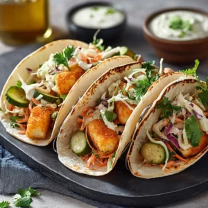 Description of this recipeCrispy Halloumi Tacos with Spicy Slaw is a delightful fusion dish that combines the savory, salty crunch …