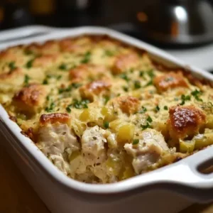 Description: Dolly’s Chicken and Stuffing Casserole is a heartwarming, easy-to-make dish that combines the comforting flavors of tender chicken, savory …