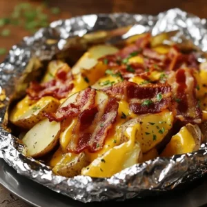 These Cheesy Bacon Ranch Potato Foil Packets are a delightful combination of tender potatoes, crispy bacon, and creamy ranch dressing, …