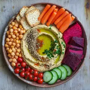 Description: This vibrant Rainbow Hummus Plate is more than just a snack; it’s a culinary canvas painted with healthy and …
