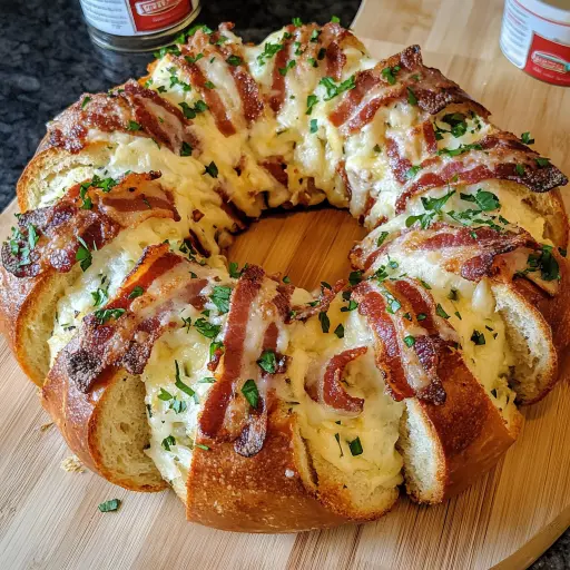 This recipe is not just about taste; it’s about the experience. The combination of melted mozzarella and cheddar cheeses creates a delightful stretch, while the crispy bacon adds a savory crunch that perfectly complements the buttery garlic flavor. The wreath shape makes it visually appealing and perfect for sharing, making it an ideal centerpiece for any occasion. Plus, it’s easy to prepare, requiring minimal ingredients and effort, so you can spend more time enjoying your company and less time in the kitchen.
